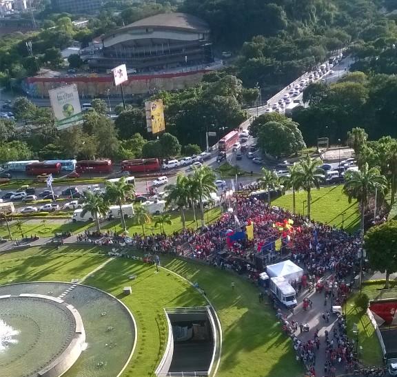 @Maburrito tweeted: FOTOS: Militantes del PSUV se concentran en Plaza Venezuela. Acto cuenta con presencia de Diosdado, Jaua y Villegas.