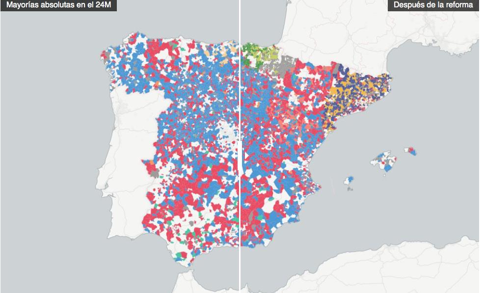 GRÁFICOS | La reforma electoral del PP le daría poder absoluto en casi 400 alcaldías más