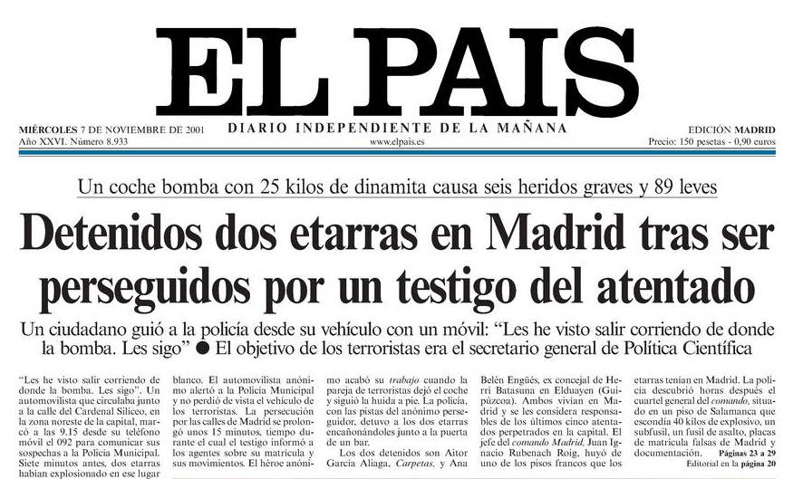 Tras estallar la bomba, guió a la policía hasta los etarras