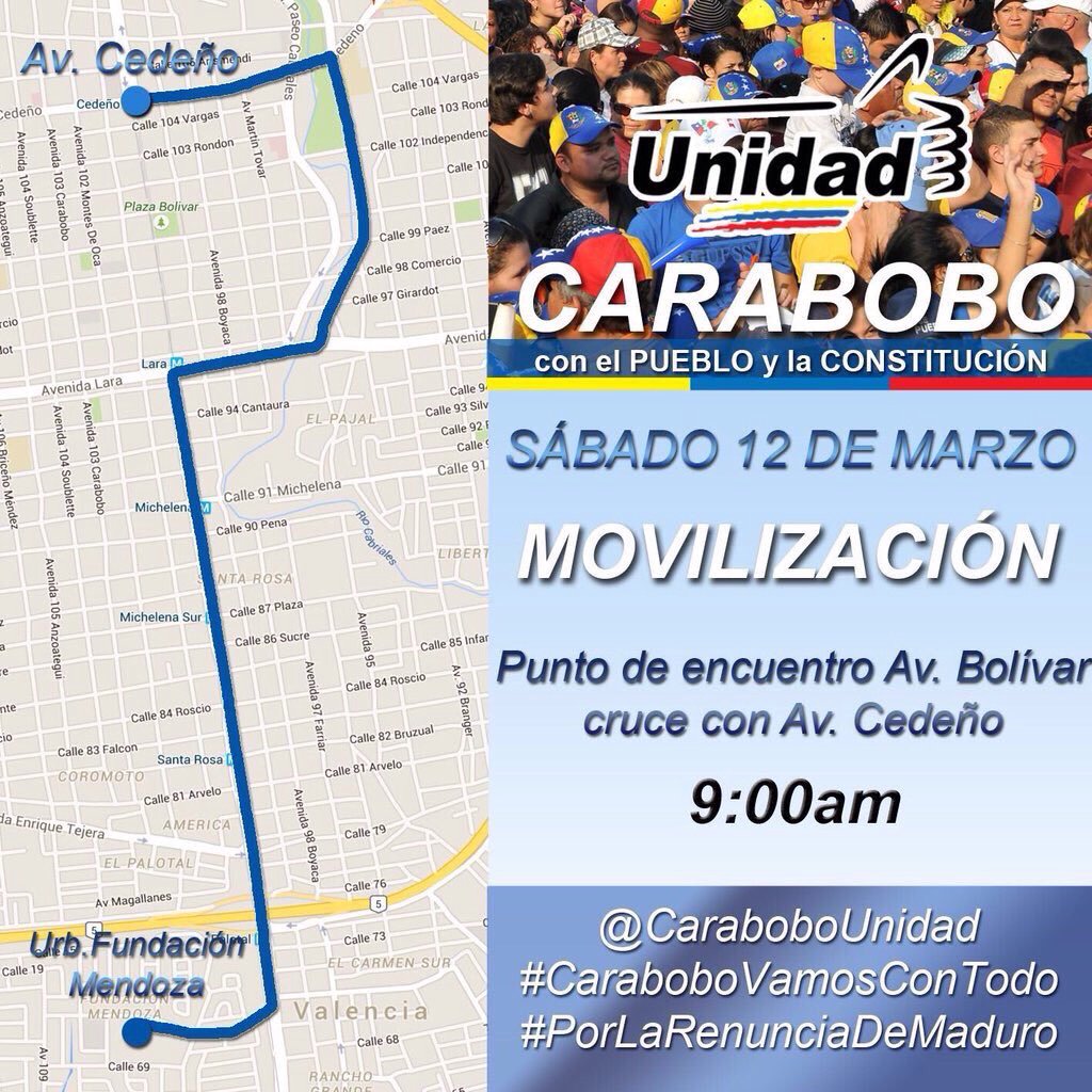 Hoy Sábado 12/03/16 CARABOBO MARCHA a favor de un