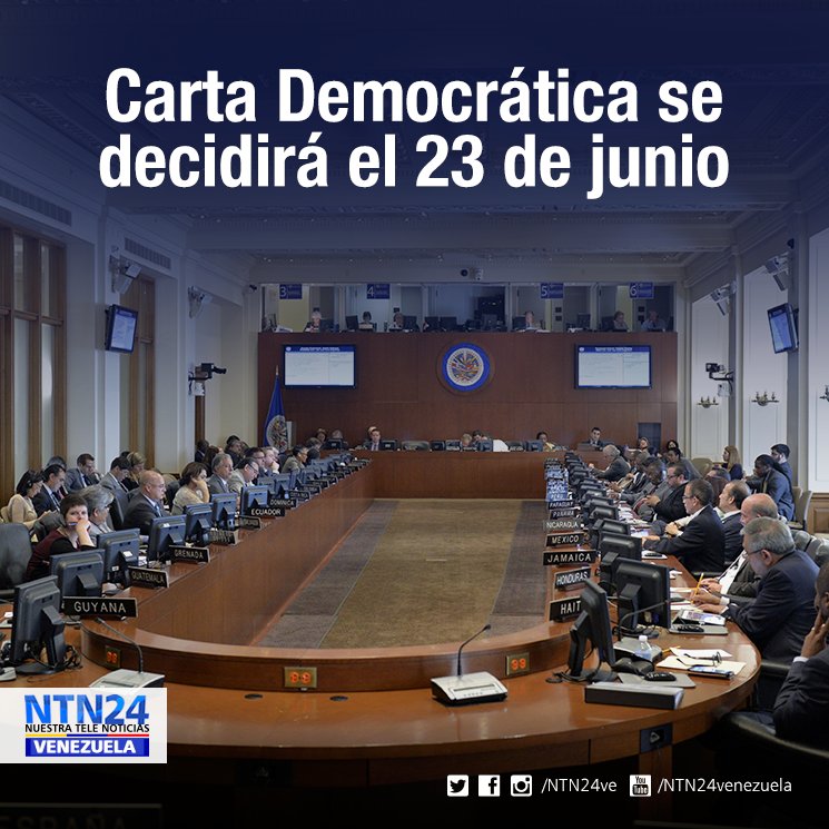 AlvaroUribeVel: RT NTN24ve: La OEA decidirá el 23 de junio si aplica la Carta Democrática a Venezuela …