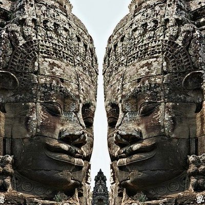 Cabezas gigantes en el templo Bayon de Angkor Wat, cultura Jemer, Camboya, siglo 12