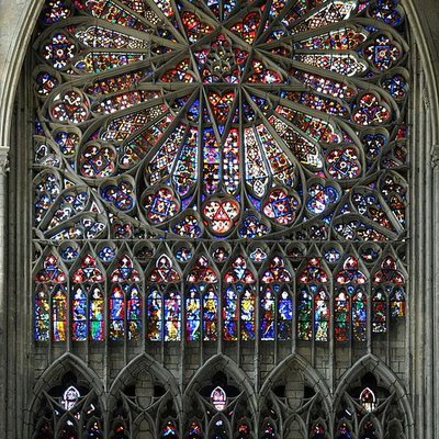 Rosetón y vidrieras de la catedral gótica de Amiens, Francia, 1220-1269